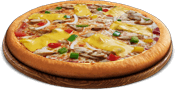 crème fraîche, fromage, poulet tandoori, poivrons, oignons, sauce biggy